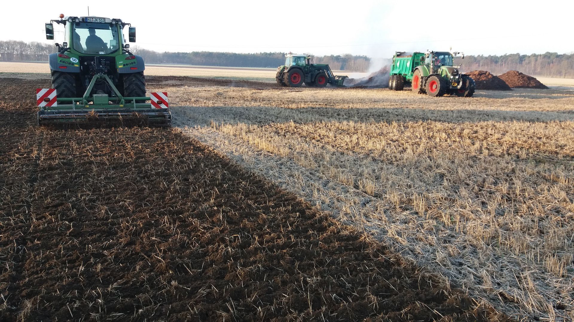 Bei der Bodenbearbeitung setzten wir neben dem Zweischichten-Pflug noch verschiedene Grubber und die Fräse ein. Für die Saatbettbereitung haben wir eine Kreiselegge mit Güttlerwalze und eine Eggen-Kombination, ebenfalls mit Güttlerwalze.